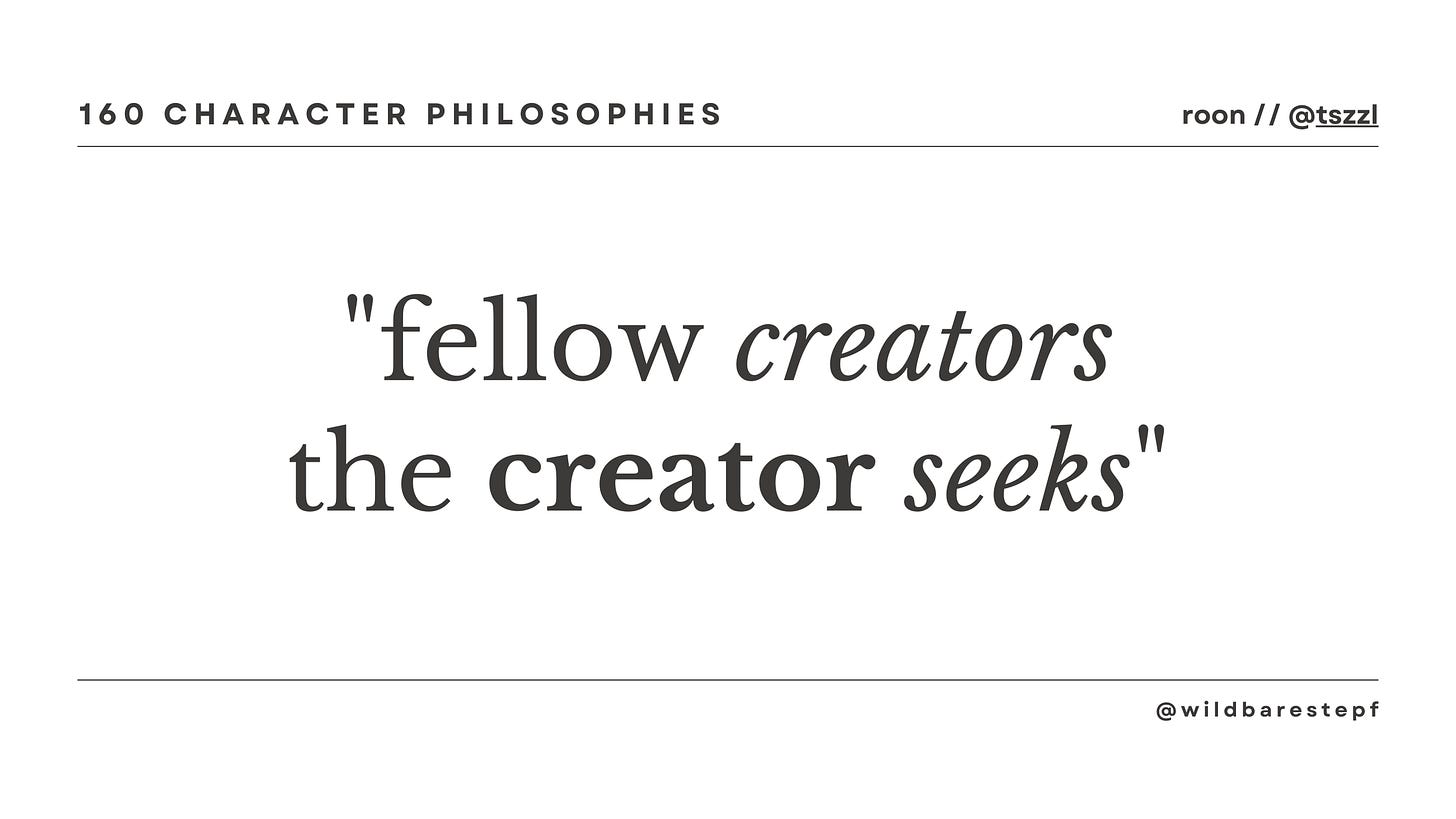 Welcome back to our ongoing exploration of bite-sized wisdom. Today, we're unpacking roon's (@tszzl) Twitter bio: "fellow creators the creator seeks"