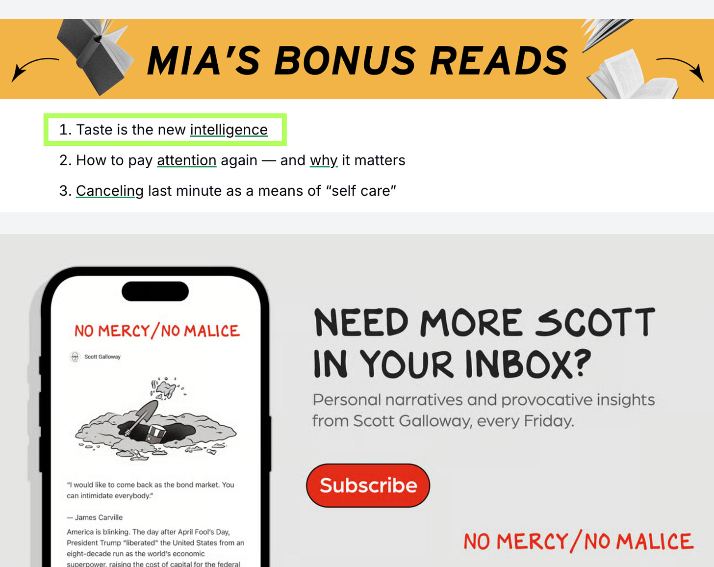 My essay on taste was also mentioned in Scott Galloway’s podcast newsletter. Like I said, this thing really made its way around the interwebs—pretty dang cool!