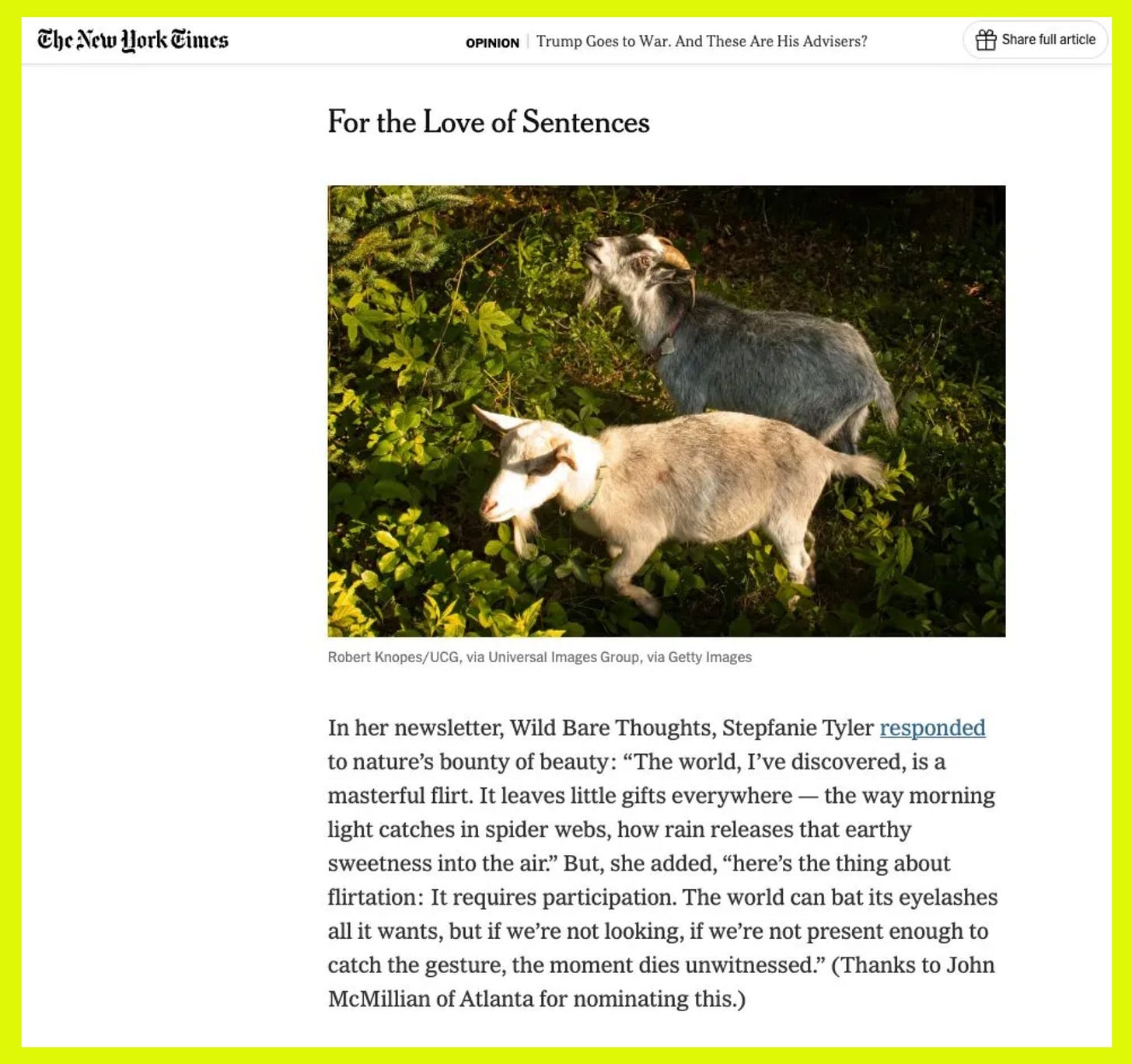 Even more super exciting news about WILD BARE THOUGHTS (and likely how many people found their way over here this past week): my essay about flirting with the world was mentioned in The New York Times last Monday (*actually screaming*)