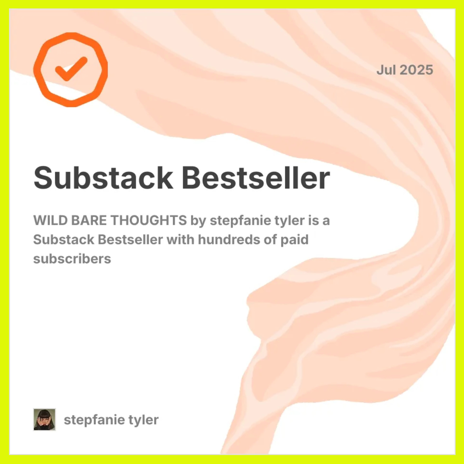 First, some news I’m STOKED to share: WILD BARE THOUGHTS became a “Substack Bestseller” last week and I couldn’t be more proud, honored and grateful. I’d like to say a HUGE thank you to everyone who reads my wild thoughts and ideas—none of this would be possible without you. So thank you, thank you, thank you.