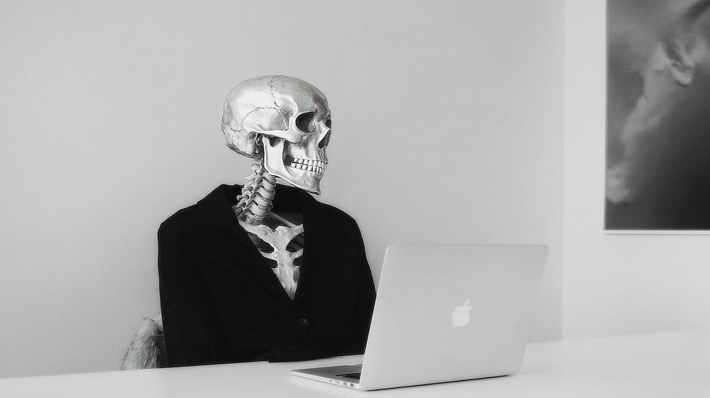 Monks kept skulls on their desks the way we keep calendars on ours, except the skull was more honest. A clock tells you what time it is. A skull tells you what time is for. It sat there while they copied manuscripts and prayed and ate their bread, and its presence reorganized everything around it without moving, the way a magnet silently reorients iron filings into a pattern they couldn’t find on their own.