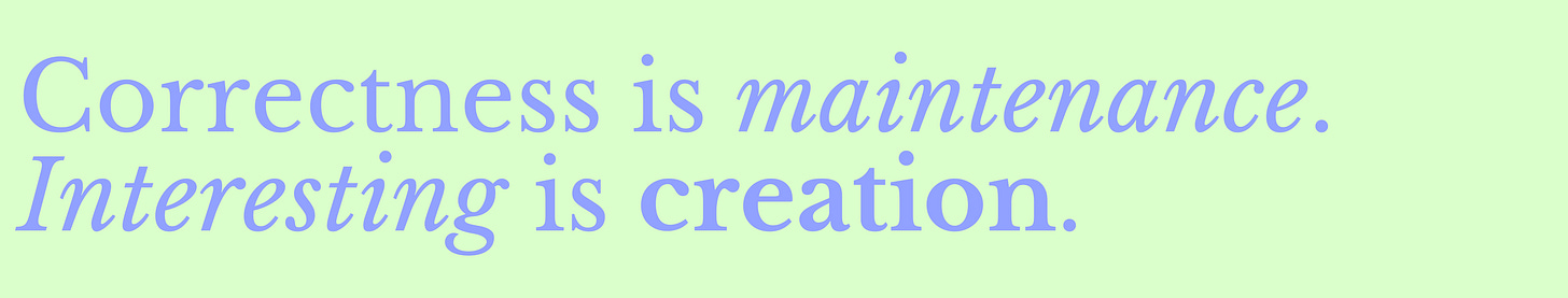 But correctness doesn’t make you compelling. And if you look closely, most people today aren’t suffering from a lack of accuracy, they’re suffering from a lack of imagination.