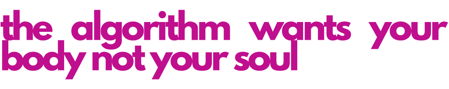 The attention economy doesn’t care about what connects you to yourself, to others, or to a larger sense of purpose. It rewards what’s fast, flashy, and easily consumed. It flattens the body into content. It collapses nuance into clickbait. And it teaches you—through a thousand micro-interactions—that your worth is directly tied to how well you perform.