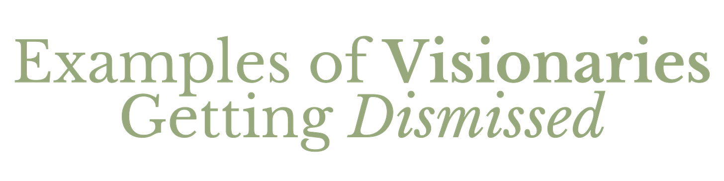 They propose things that seem too big, too fast, too weird. They get laughed at, dismissed, or aggressively downplayed. And then five or ten years go by—and suddenly everyone talks about them like they were obvious all along.