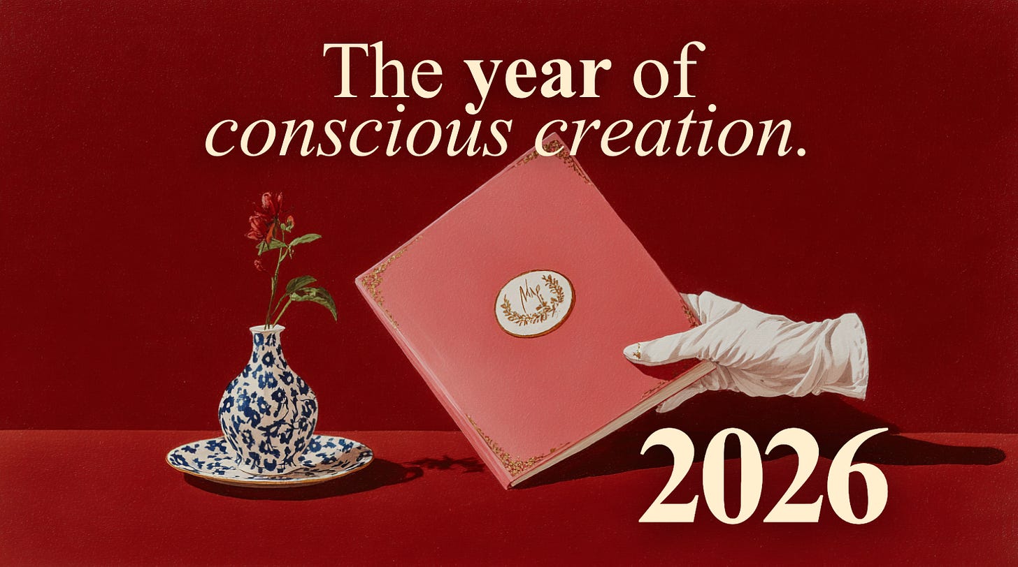 Most of what I’ll be talking about next year will live inside this idea of conscious creation, treating 2026 as an open lab for building and breaking systems in public. The essays, the prompts, the tracker, the behind-the-scenes experiments are all different ways of asking the same question: if you stop outsourcing your future to “someday” and start designing it on purpose, what actually changes?